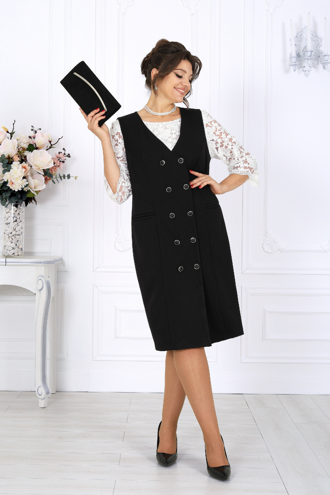 Этот сарафан, изготовленный из натуральной ткани, предлагает вам элегантность и комфорт в каждой детали. Его двубортный дизайн придает сарафану строгий и структурированный вид, что идеально подходит для офисного стиля. Однако, добавив праздничную блузку, вы трансформируете этот сарафан в стильное решение для торжественных событий.