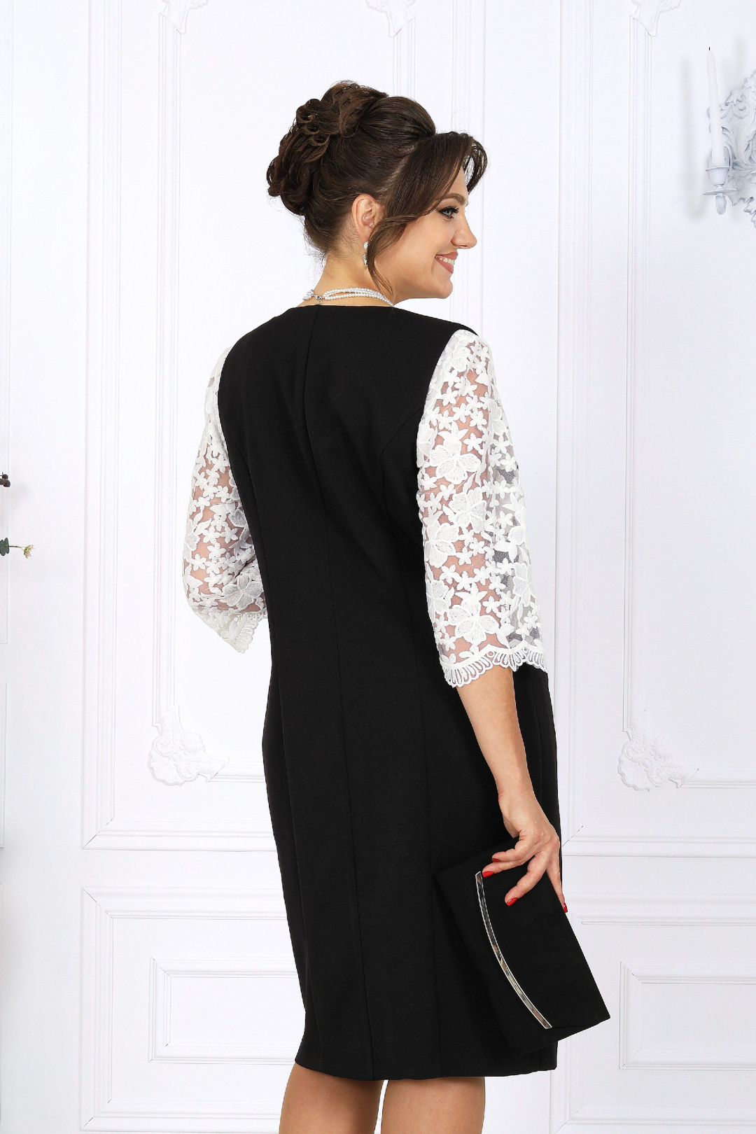Сарафан полуприлегающего силуэта, выполнен из костюмной ткани, с двубортной застежкой на 9 петель, 10 декоративных и 4 потайных пуговиц, на трикотажной подкладке. Длина сарафана по среднему шву спинки 102 см. Перед с рельефными швами, проходящими через центр груди, идущими от пройм до низа, с прорезными карманами в рамку от рельефных швов. Спинка с рельефными швами, идущими от пройм до низа, со средним швом. Проймы переда и спинки обтачные. Горловина переда V-образной формы, углубленная.