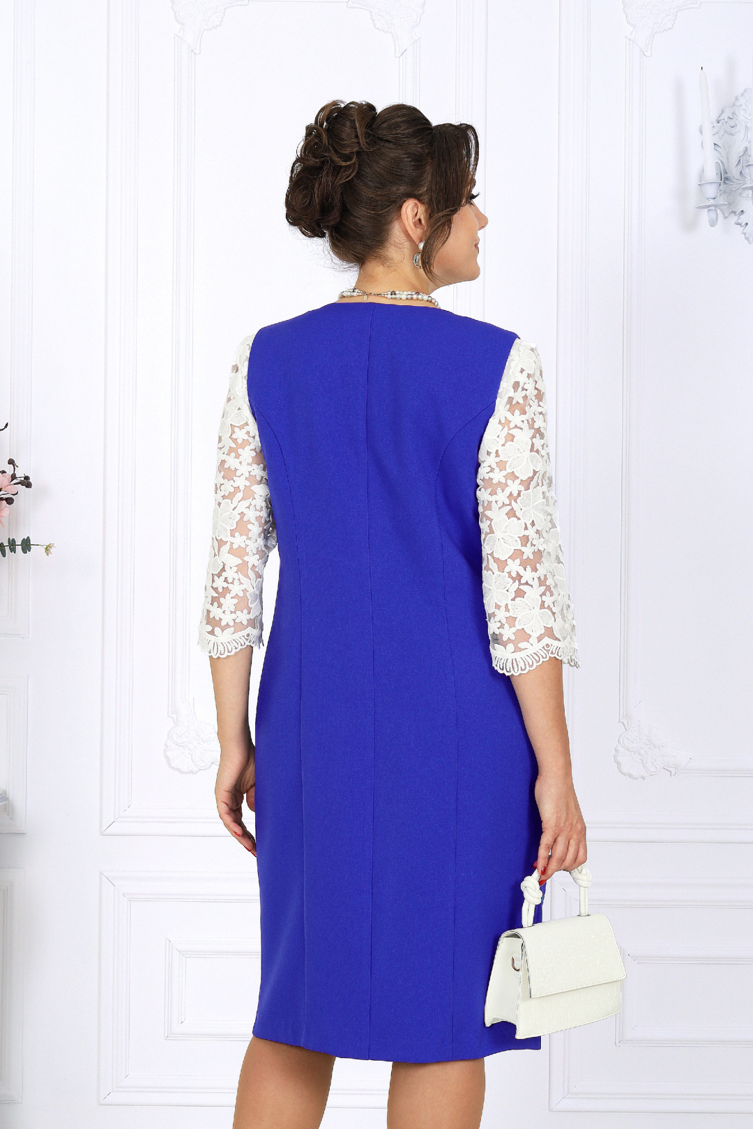 Сарафан полуприлегающего силуэта, выполнен из костюмной ткани, с двубортной застежкой на 9 петель, 10 декоративных и 4 потайных пуговиц, на трикотажной подкладке. Длина сарафана по среднему шву спинки 102 см. Перед с рельефными швами, проходящими через центр груди, идущими от пройм до низа, с прорезными карманами в рамку от рельефных швов. Спинка с рельефными швами, идущими от пройм до низа, со средним швом. Проймы переда и спинки обтачные. Горловина переда V-образной формы, углубленная.