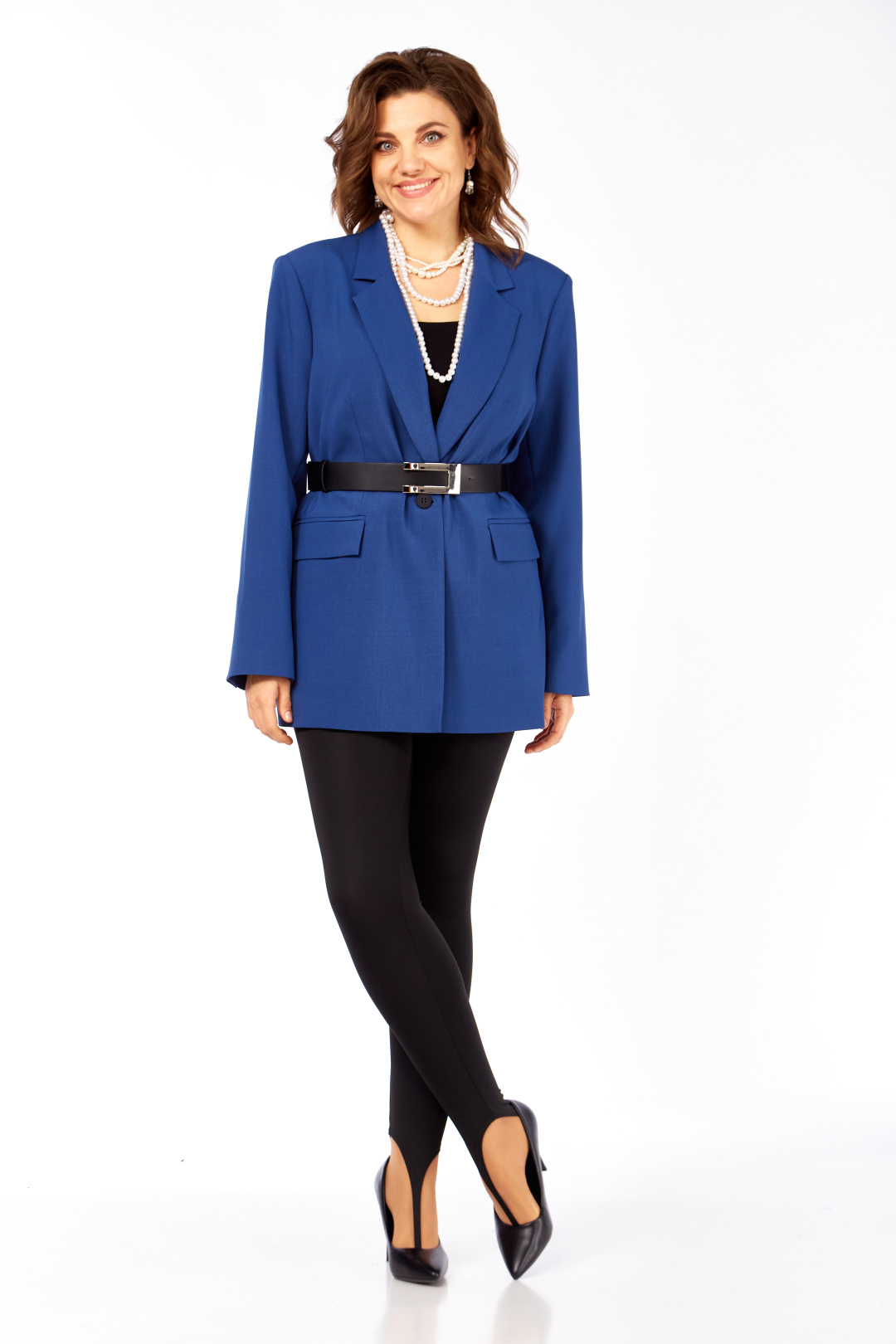 Элегантный жакет синего цвета выполнен из качественного материала, что придает изделию изысканный вид. Модель обладает прямым силуэтом, пиджачным воротником и застежкой на одну пуговицу, подчеркивающую лаконичность дизайна. На передней части жакета расположены практичные карманы с клапанами, добавляющие функциональности. Длинные рукава дополнены двухшовной шлицей с четырьмя пуговицами на каждом, обеспечивая изделию изысканный вид. Этот жакет станет отличным дополнением к деловому гардеробу.