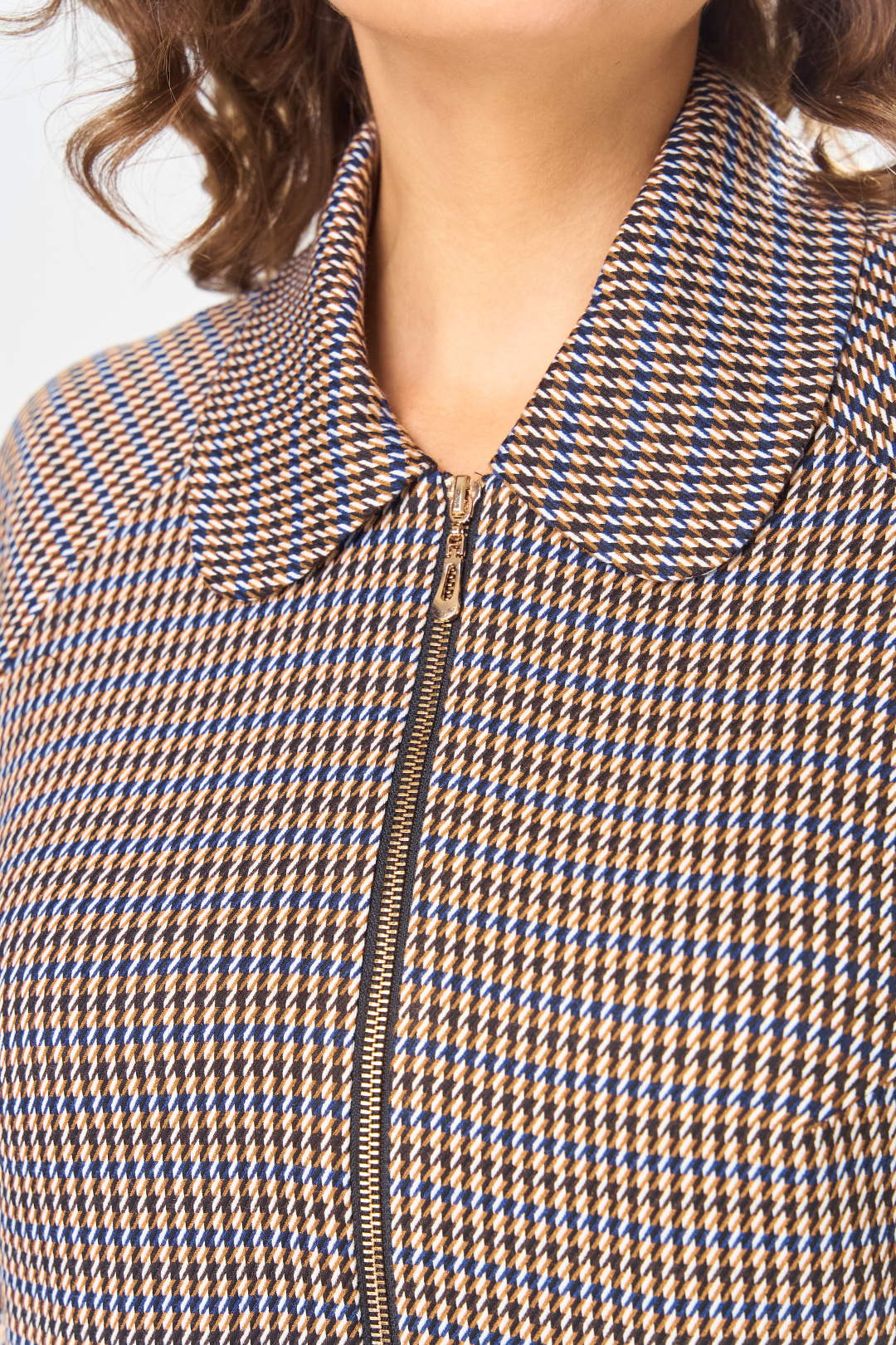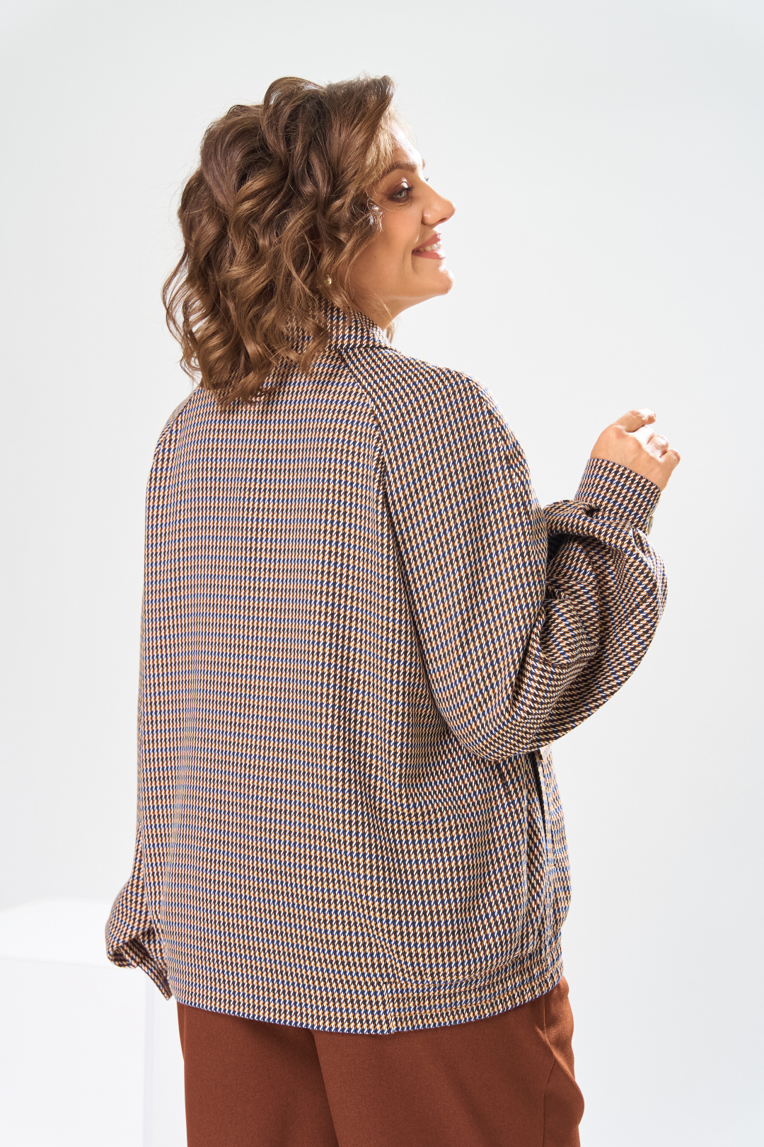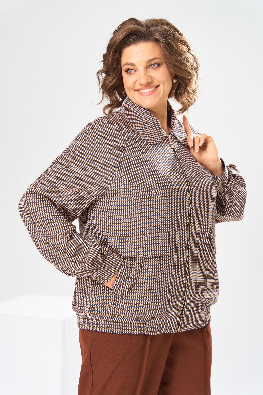 Костюм женский, предназначен для повседневной носки. Костюм женский 2-х предметный. Жакет и брюки. Жакет женский прямого силуэта, длиной до линии бёдер. Перед с 2-мя нагрудными вытачками, выходящими из пройм, с 2-мя прорезными карманами с листочками расположенными на уровне линии бёдер с 2-мя построчными клапанами, расположенными над карманами. Спинка цельнокроеная. Низ частично (по бокам) с втачным поясом собранным на эластичную тесьму, закреплённую 2-мя отделочными строчками. Горловина с втачным воротником с закруглёнными концами с отрезной стойкой. Застёжка центральная бортовая на разъёмную тесьму-молнию. Рукав втачной реглан, 2-х шовный, длинный с 4-мя односторонними складками по низу и притачной манжетой, с застёжкой на 1-ну обмётанную петлю и 1-ну пришивную пуговицу. Жакет без плечевых накладок. Жакет на притачной подкладке. Брюки женские прямые длинные.