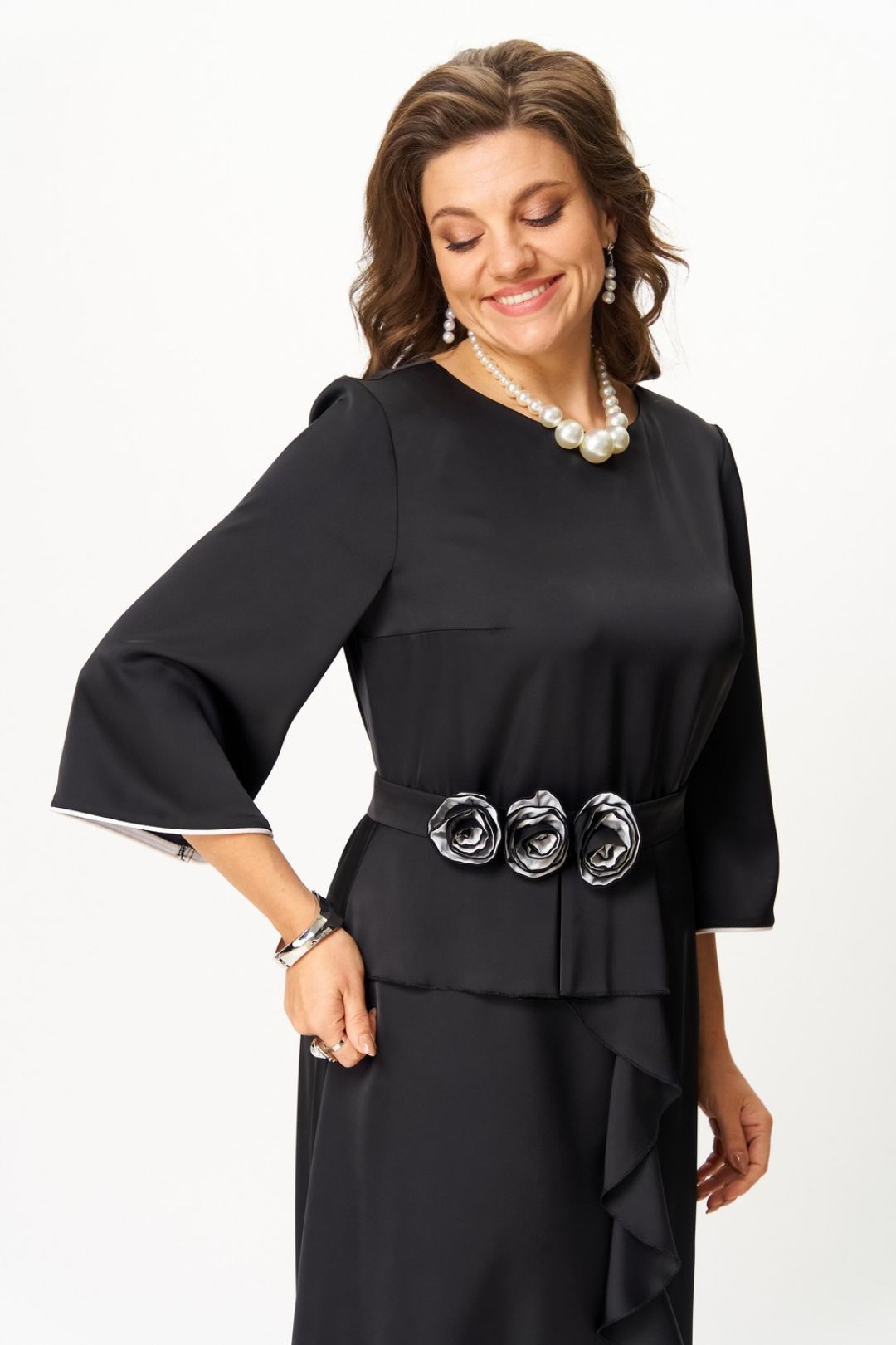 Рукав длиной 7/8 расширен к низу с отделкой кантом. По линии талии съемный пояс с украшением ручной работы в виде роз. Такое платье отлично подойдет как для вечернего выхода, так и для более формальных событий.