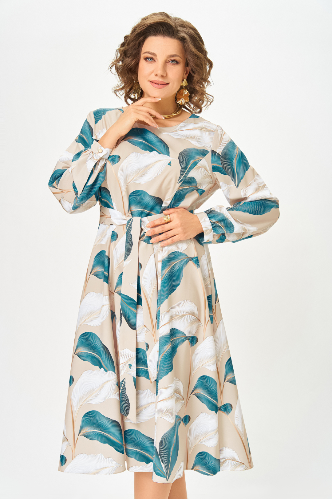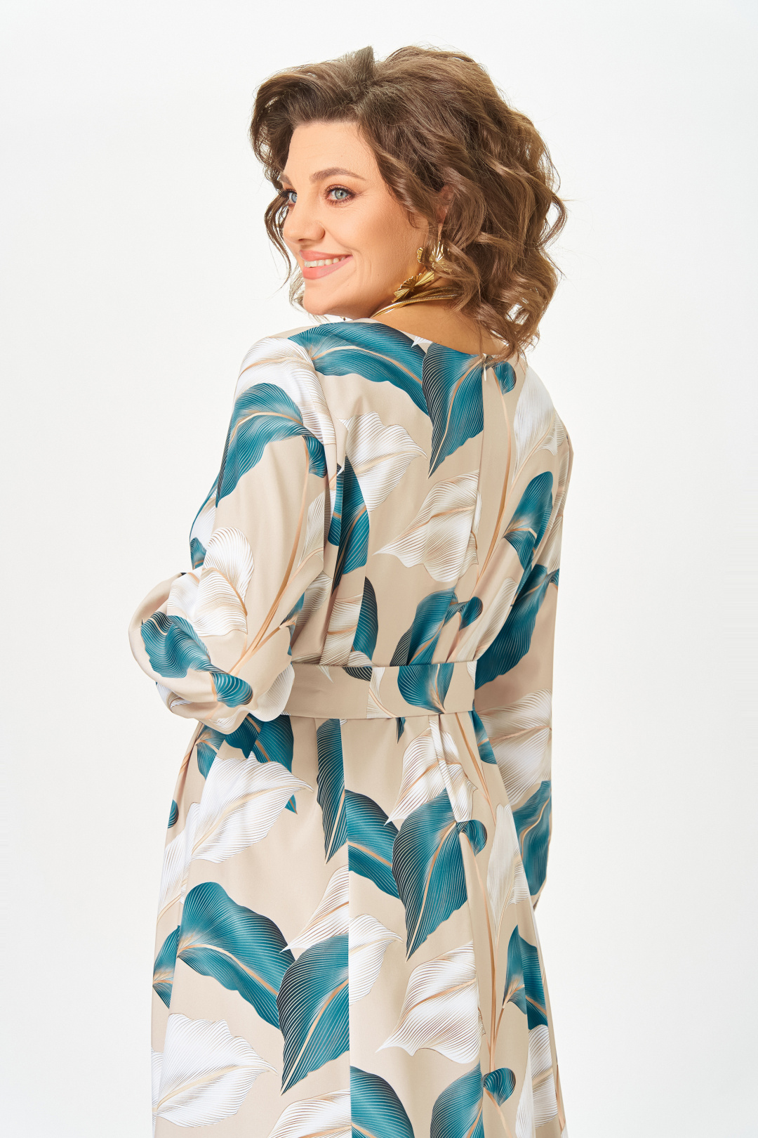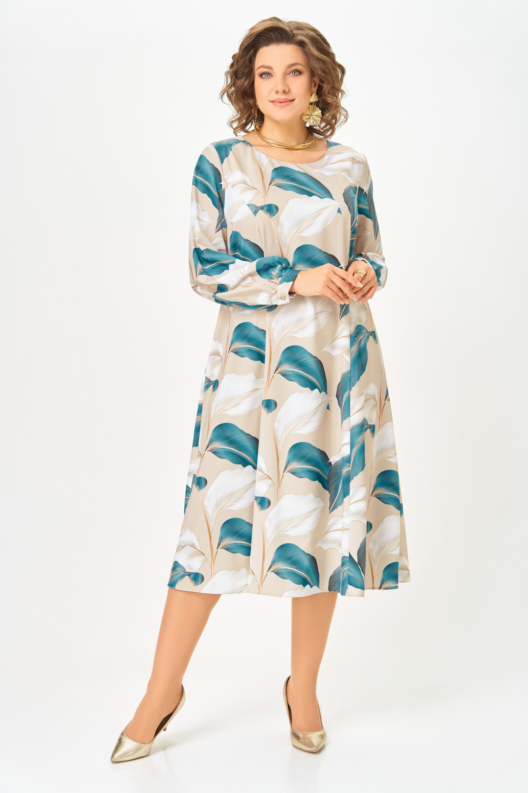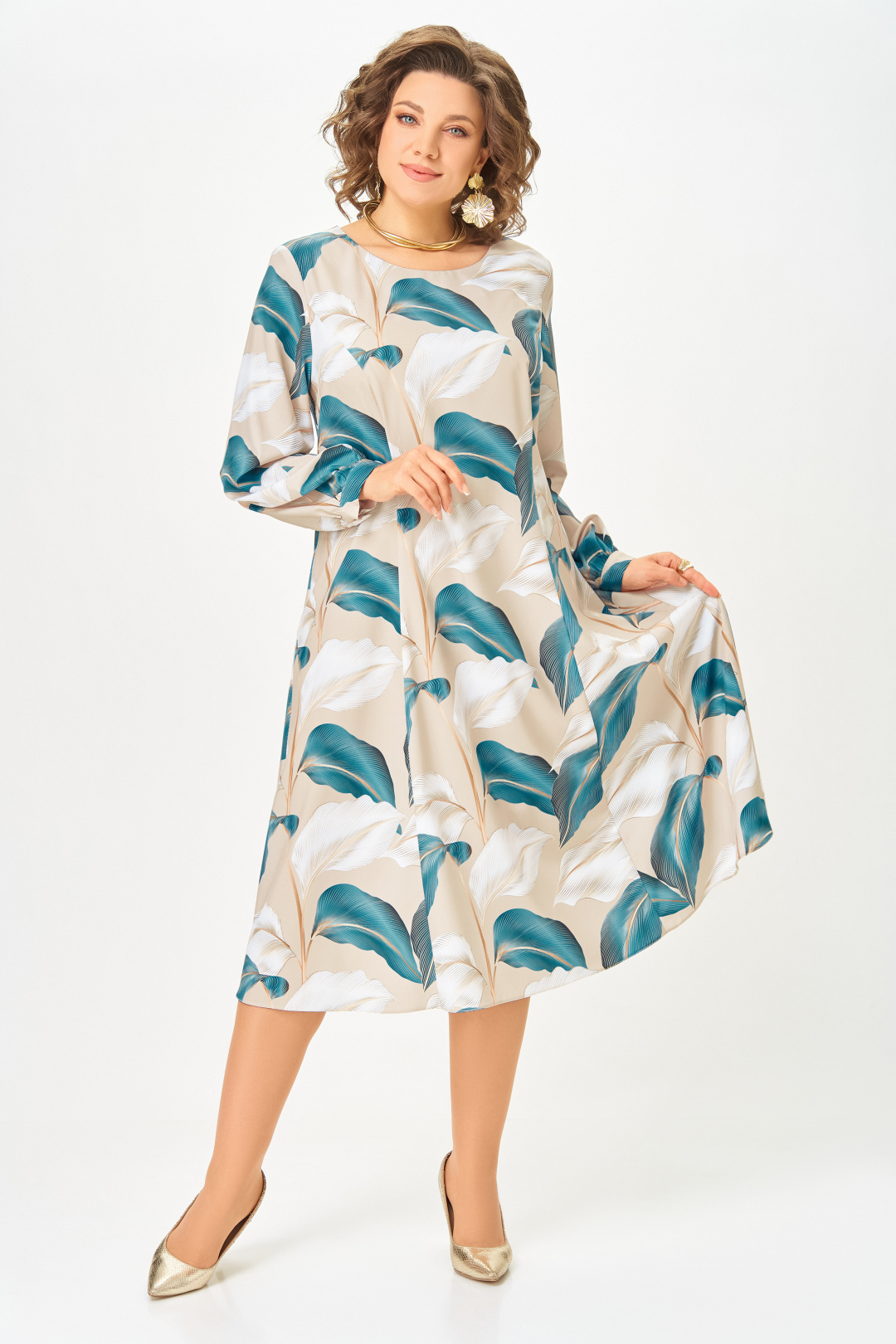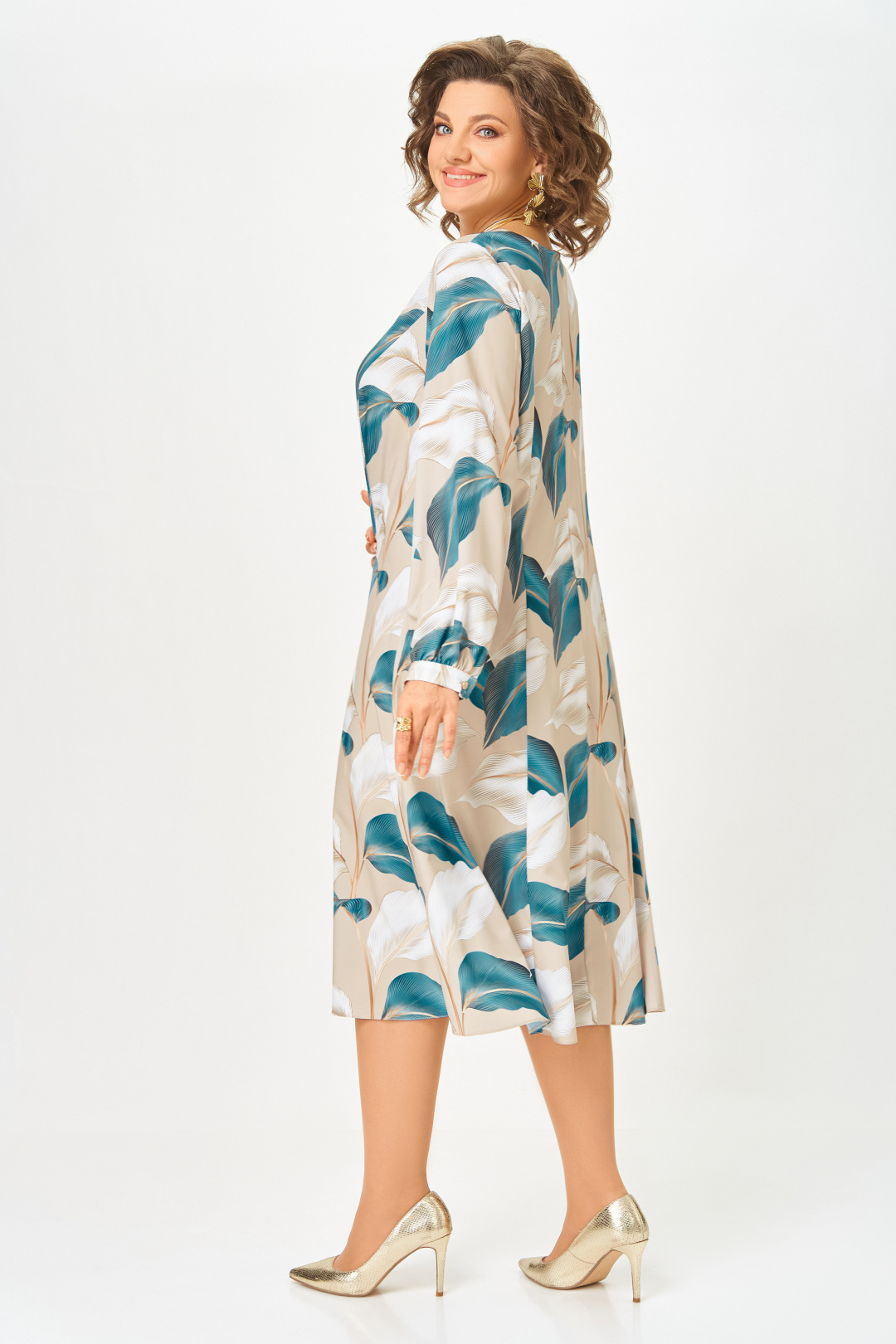 Платье полуприлегающего силуэта из мягкой вискозной ткани. Полочка с отрезными рельефами, спинка с центральным швом и рельефами. Горловина округлой формы. Рукав втачной, длинный внизу со сборкой и манжетой, которая застёгивается на петлю и декоративную пуговицу.