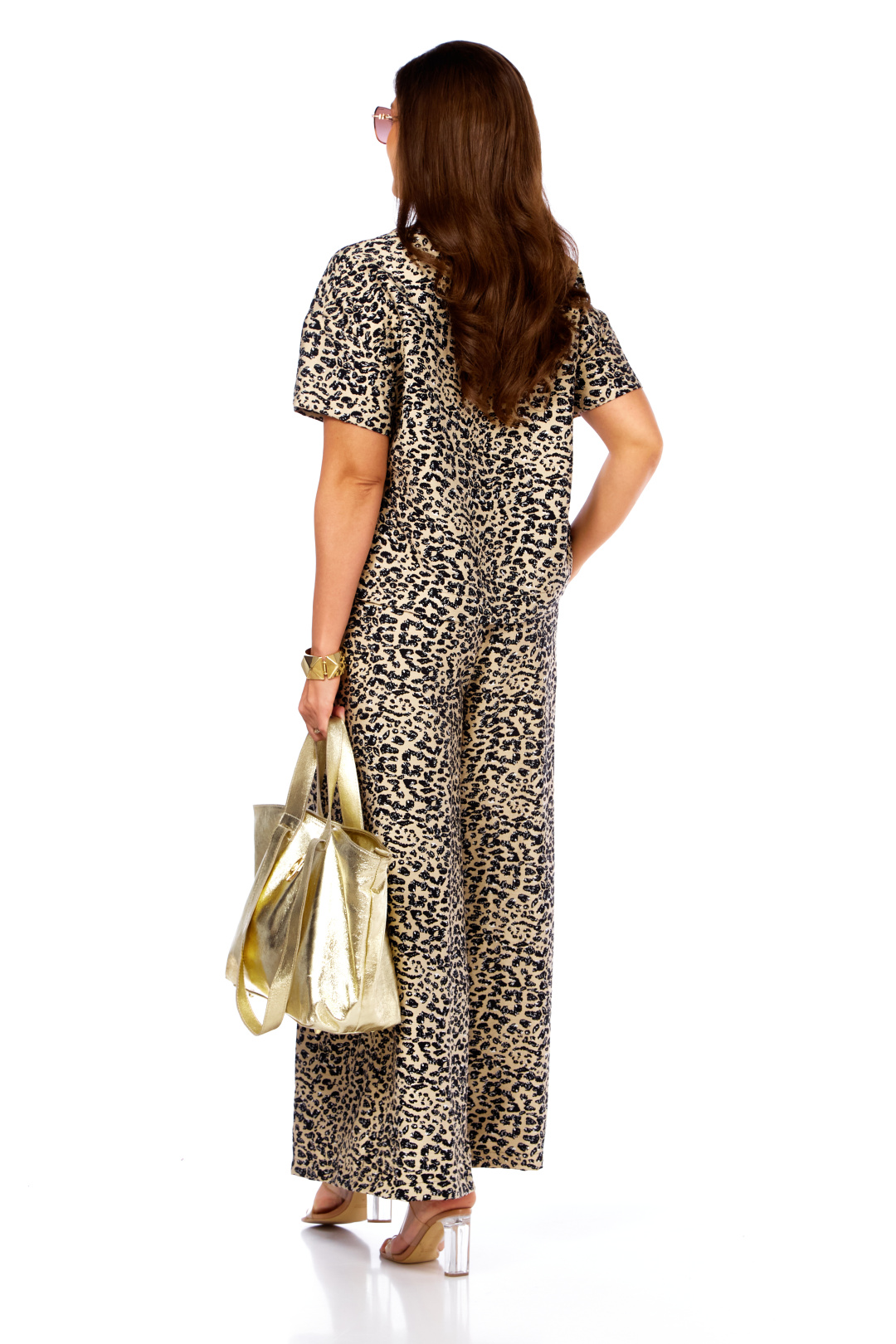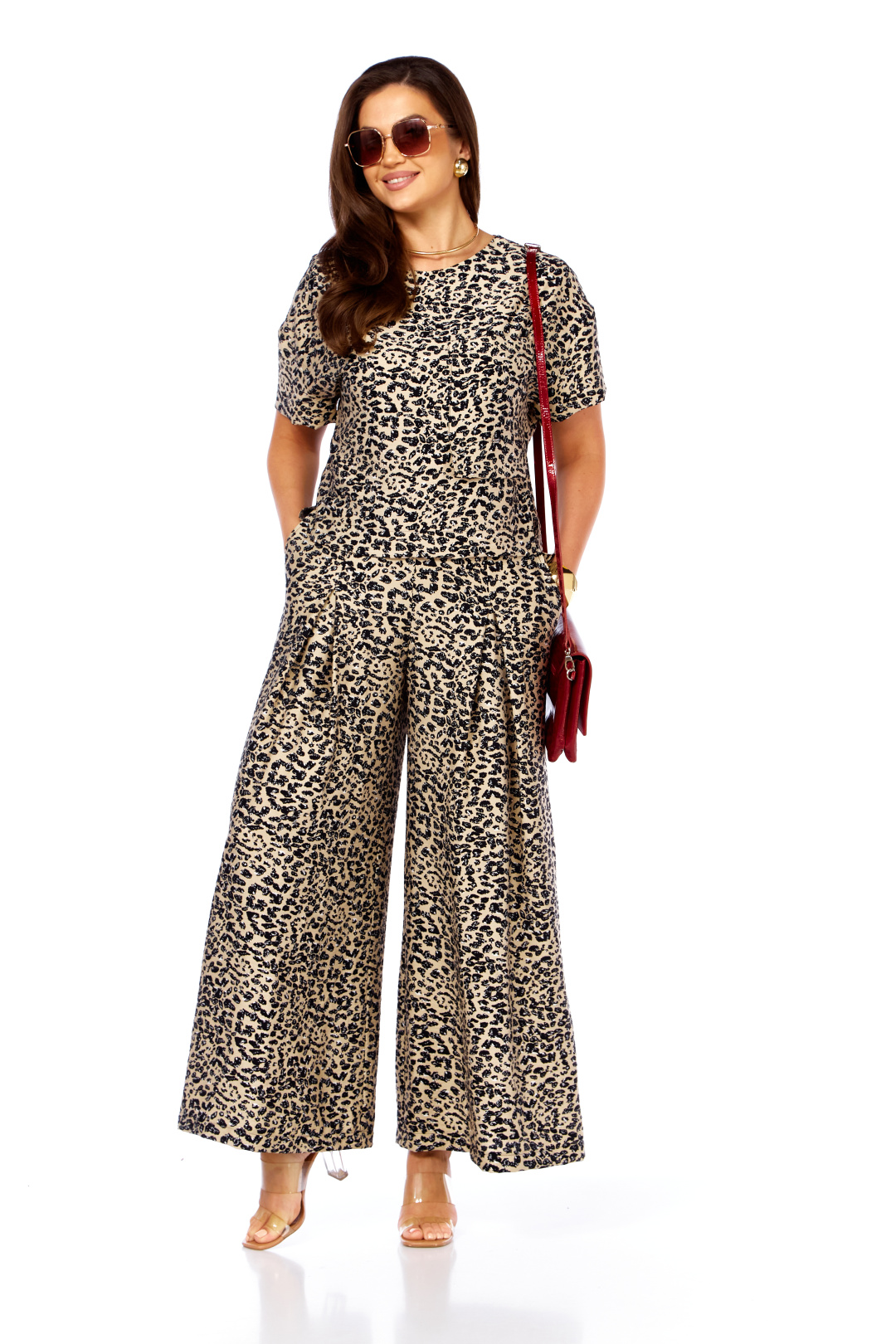 Стильный ,элегантный ,красивый , женский комплект из качественной ткани вискоза твид, состоит из брюк палаццо и блузона. Блузон со спущенной проймой , переходящий в двойной рукавчик . Спинка сзади на кокетке. Длина по спинке от плеча 61,5 см Брюки палаццо ,с хорошей посадкой . Спереди брючки со встречной складкой и функциональными карманами по бокам. Длина брюк 105 см