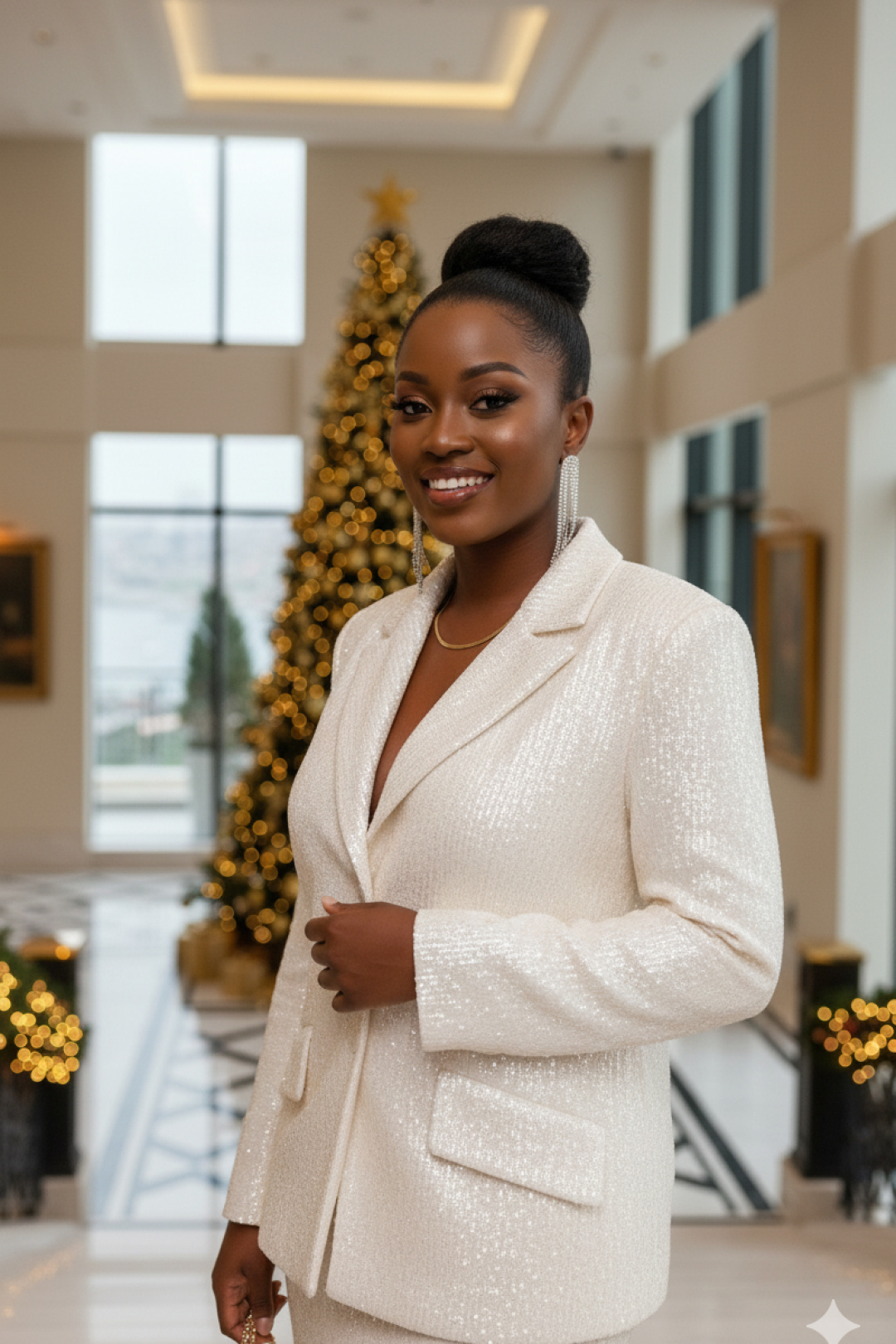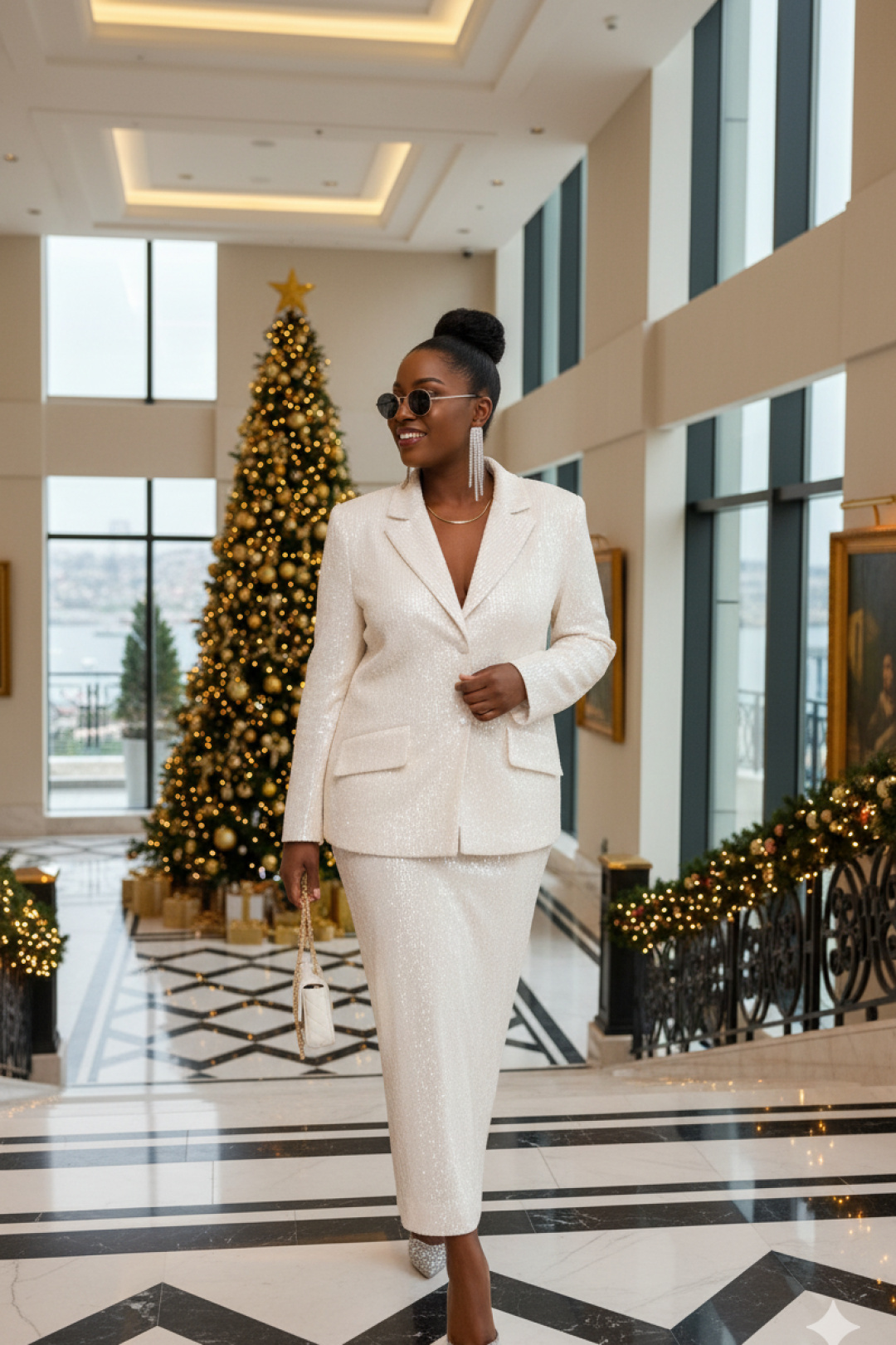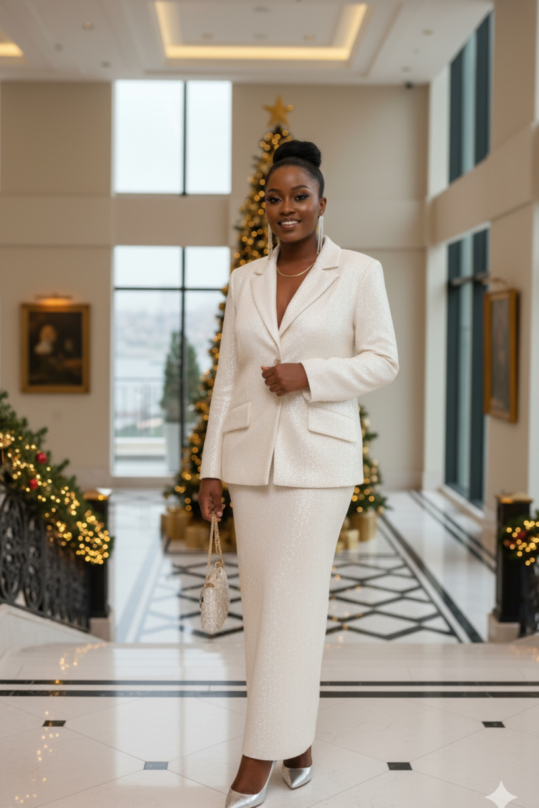 Это не просто женский юбочный костюм — это будто вторая кожа, сотканная из ночных огней и лунной пыли. Пайетки, бесчисленные и плотно прилегающие друг к другу, словно чешуя диковинной рыбы, не просто сверкали. Они жили своей собственной, мерцающей жизнью, рождая на своей поверхности целую вселенную из бликов. Костюм женский, двухпредметный, состоящий из жакета и юбки.