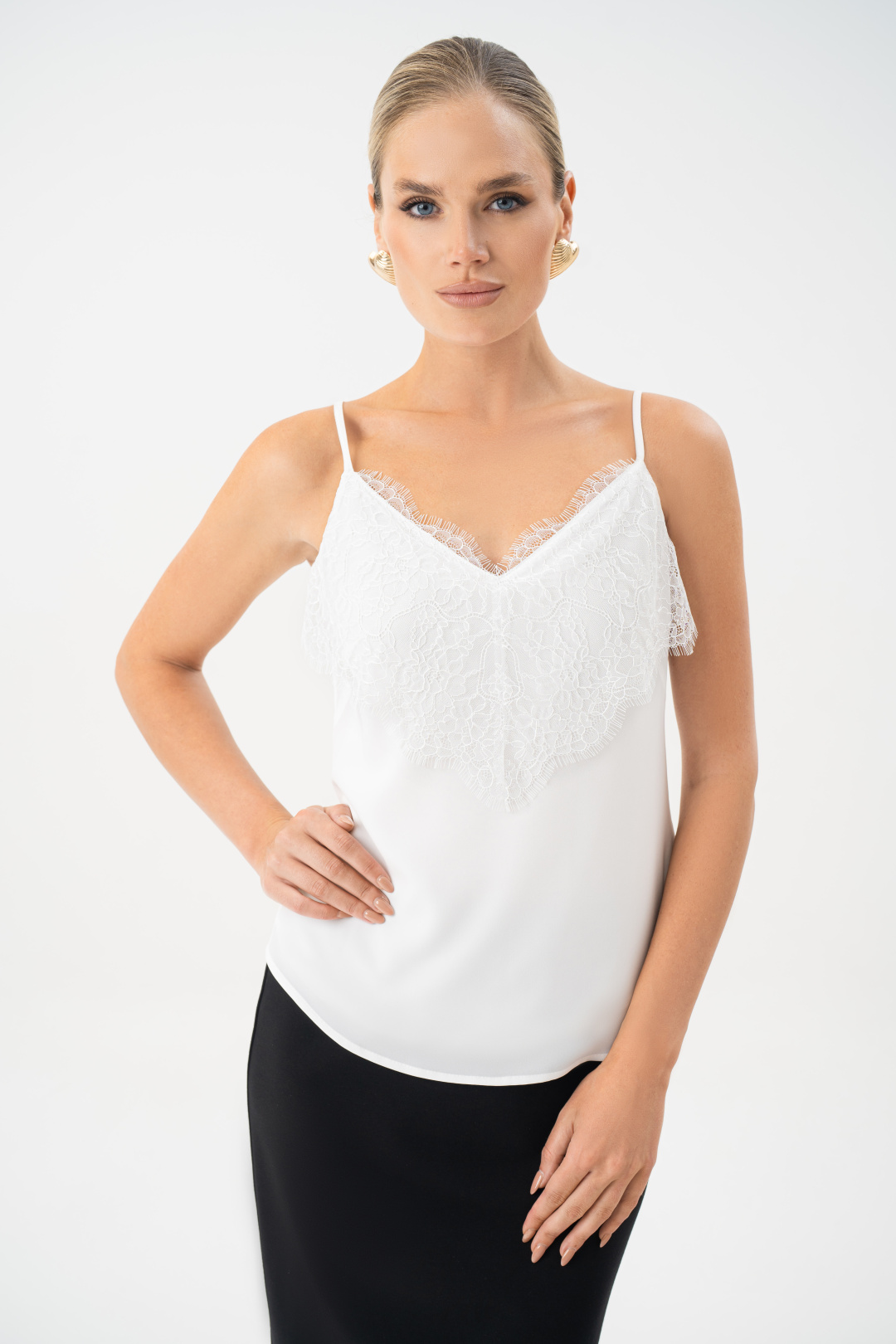 Топ с кружевом URS — это воплощение элегантности, женственности и безупречного вкуса. Такой топ станет универсальной базой в гардеробе современной женщины, которая ценит стиль и комфорт. Легкий и изысканный, он подчеркивает утонченность образа и гармонично вписывается как в деловой, так и в вечерний стиль.